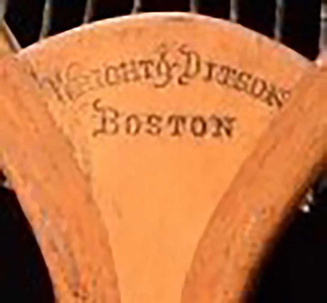Circa 1880-1890: Logo 1. The initial Wright & Ditson mark was a simple incised stamp. The typeface chosen had pronounced serifs. I have also seen this mark on early tilt tops where the top line "Wright & Ditson" was parallel to the bottom "Boston" line, instead of arched as shown here.